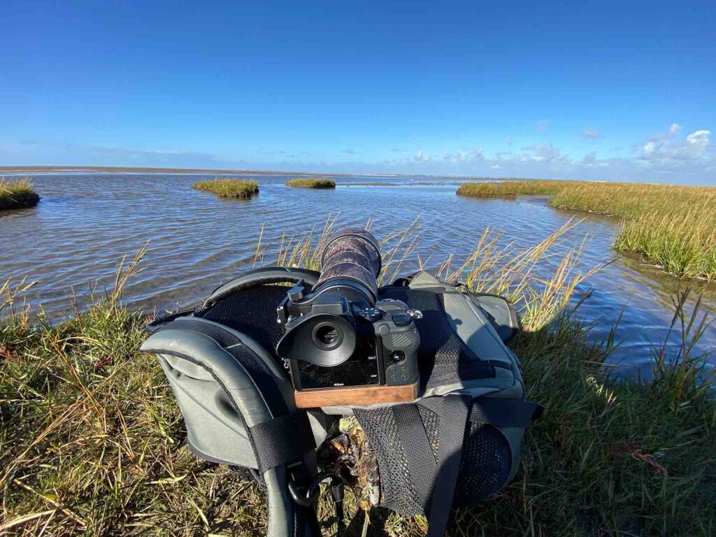 As I approached the water’s edge I immediately saw some Black-headed Gulls, Little Egrets and a lone Grey Plover. So I quickly jumped into the Camo Ghillie and got set up down in the mud.